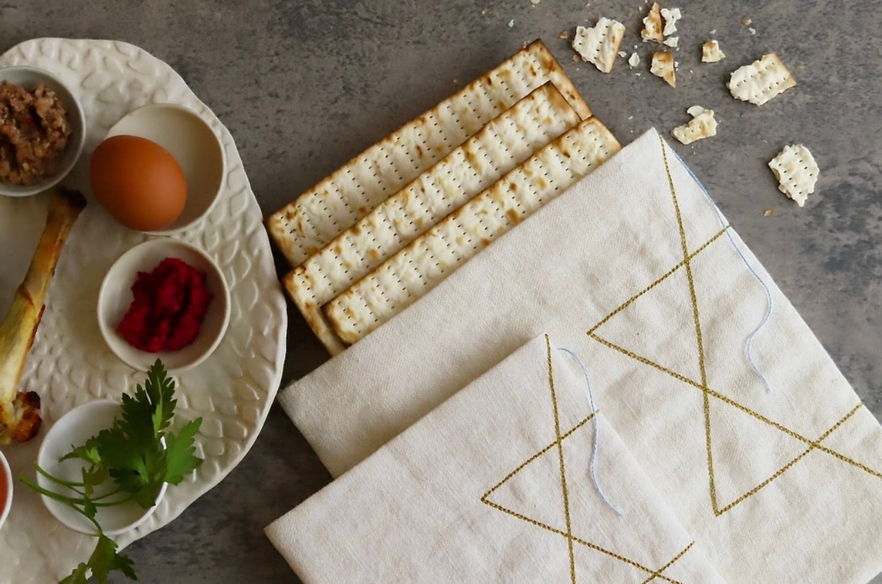 Designed by Pearl Richman, our chic and modern Matzah Cover + Afikoman Bag Set will elevate your Seder table. This sand coloured, vintage washed linen is handmade with love by Canadian women, and features an antique gold threaded Star of David.
